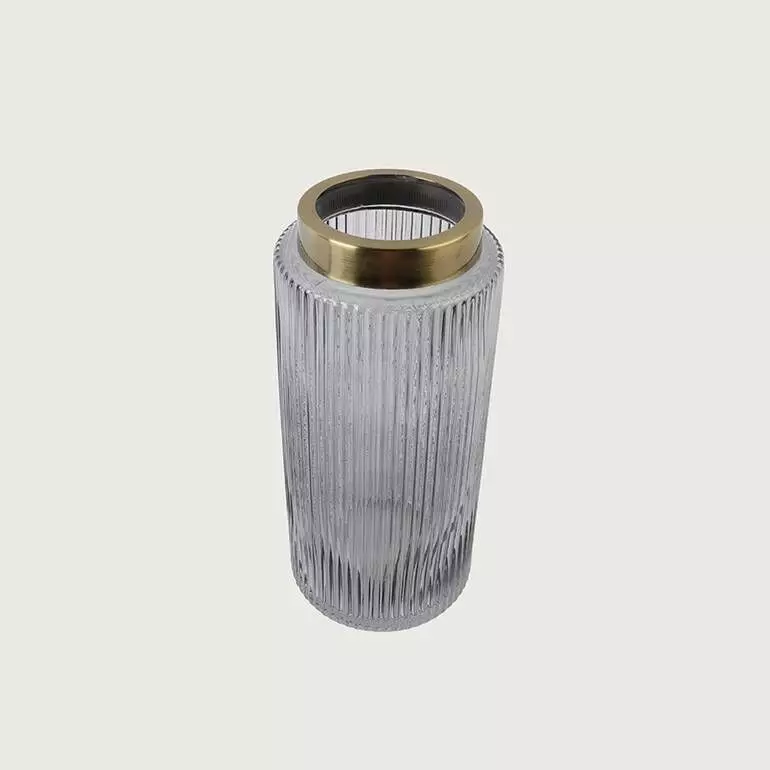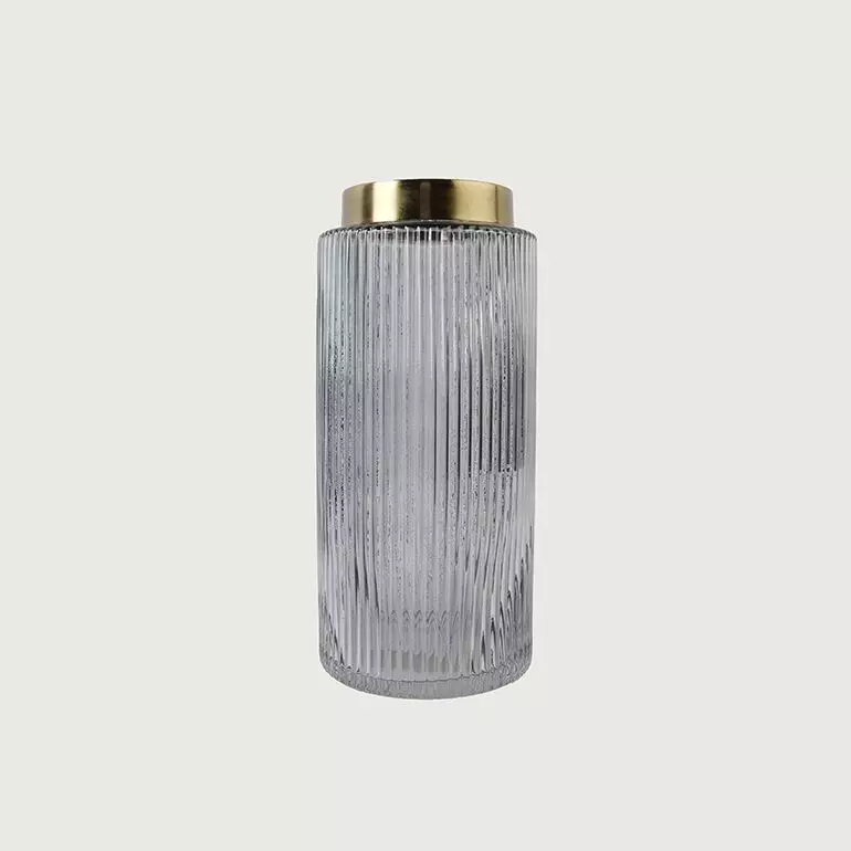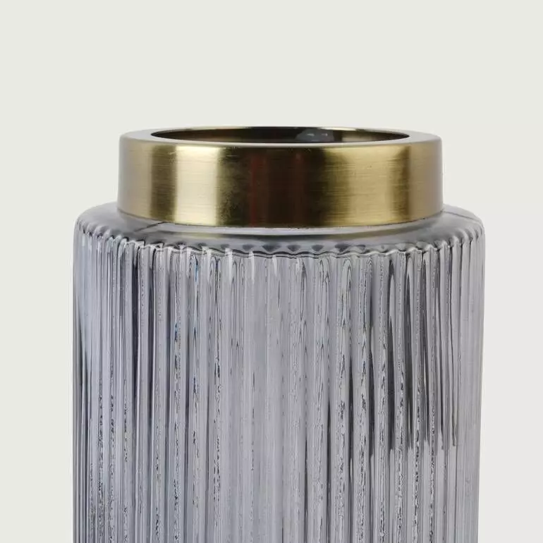 فازة إبداعية مصنوعة من الزجاج باللون الرمادي, يمكن تزيينها بوضع نبات إصطناعي أو أزهار حقيقية بداخلها وعرضها على طاولة الطعام أو في غرفة المعيشة.