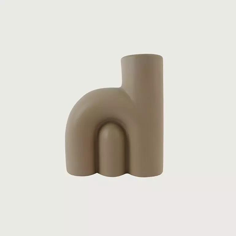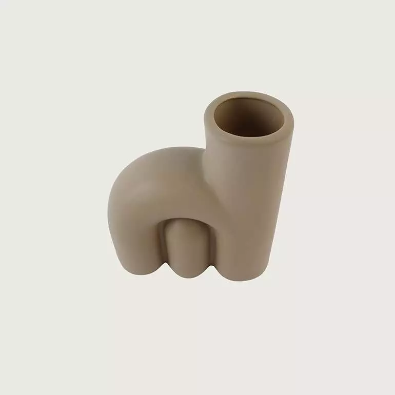 فازة إبداعية مصنوعة من السيراميك باللون البني, يمكن تزيينها بوضع نبات إصطناعي أو أزهار حقيقية بداخلها وعرضها على طاولة الطعام أو في غرفة المعيشة.