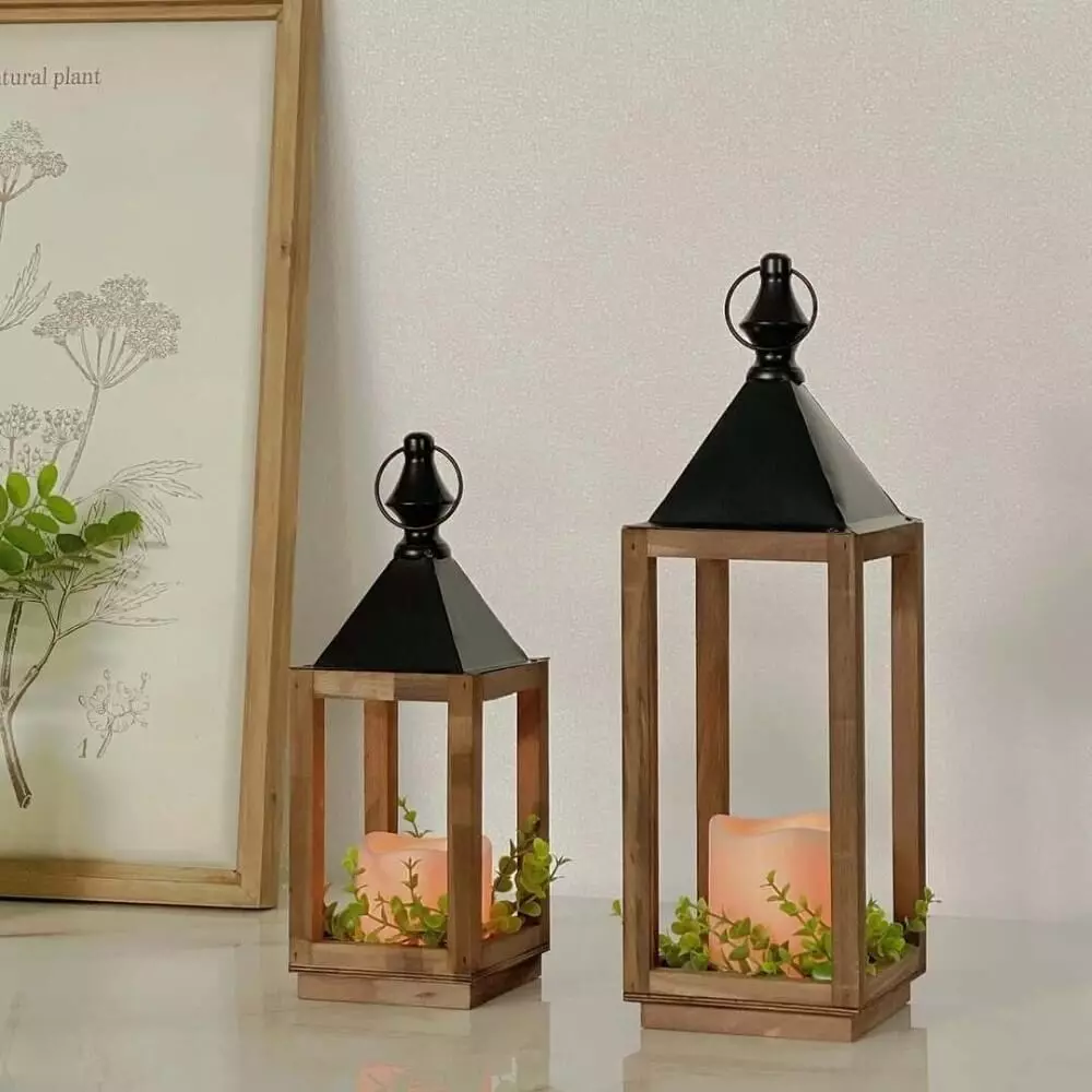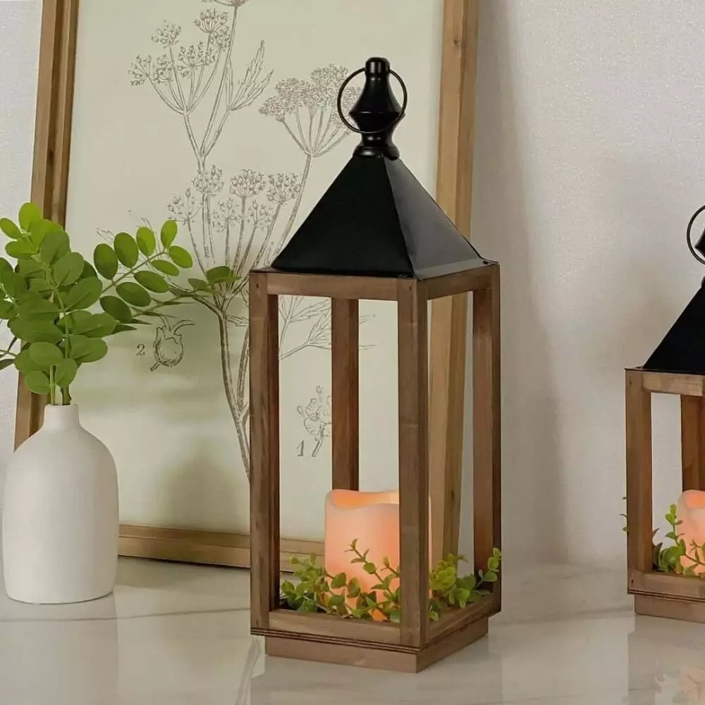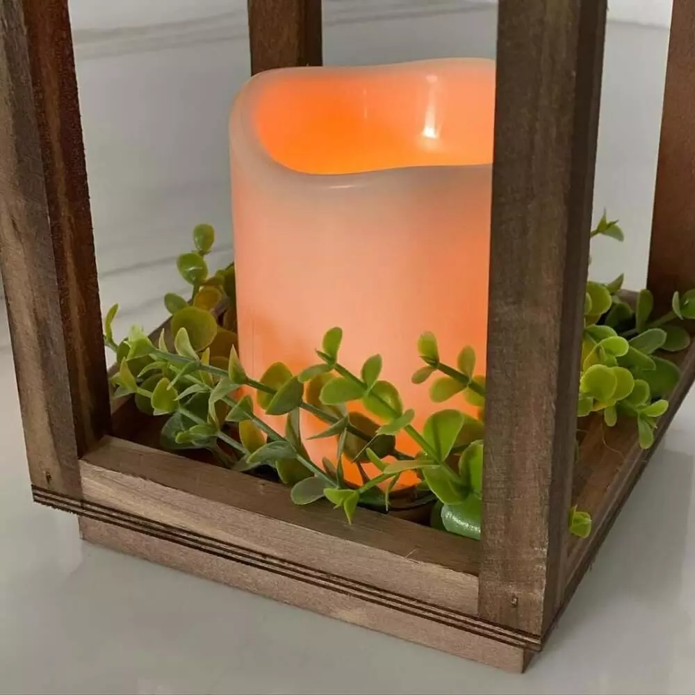 ابتكري مظهرًا لطيفًا لمساحة الطاولة الخاصة بكِ باستخدام هذا الفانوس الساحر ذي الشكل المربع. مصنوع يدويًا من الخشب مزود بشمعة بلاستيك تعمل بالبطارية