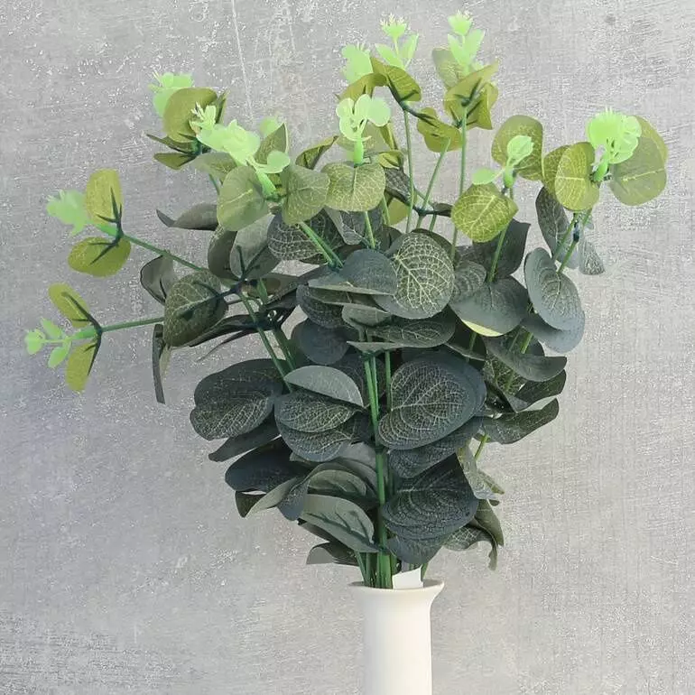 فرع شجرة أوكالبتوس صناعي يستخدم عادة في الديكور الداخلي وتنسيق المساحات الداخلية، يعتبر بديلاً ممتازًا للأوراق الطبيعية لمن يبحث عن مظهر نباتي دون الحاجة إلى الأعتناء بالنباتات الحية.