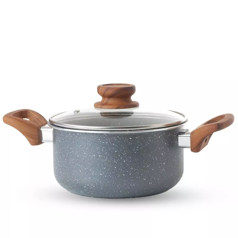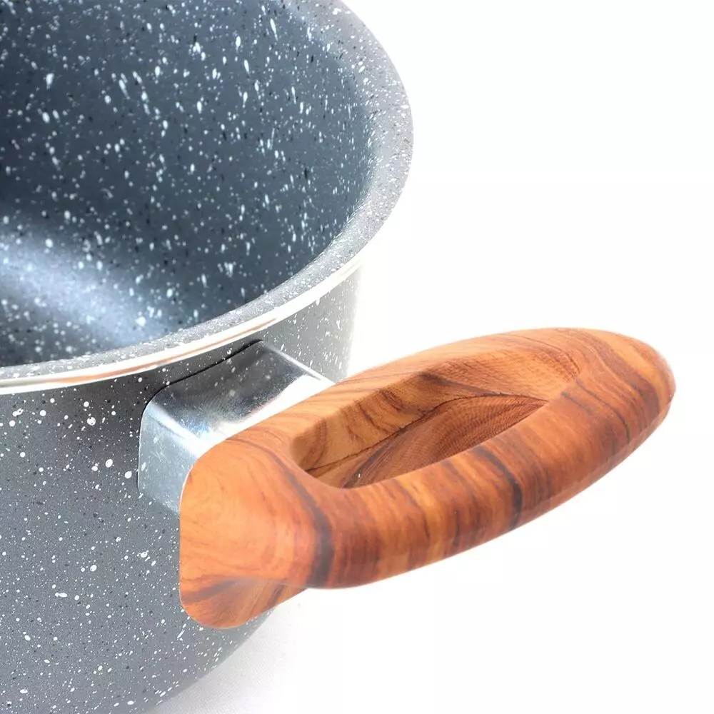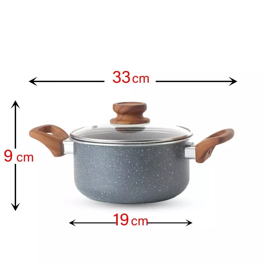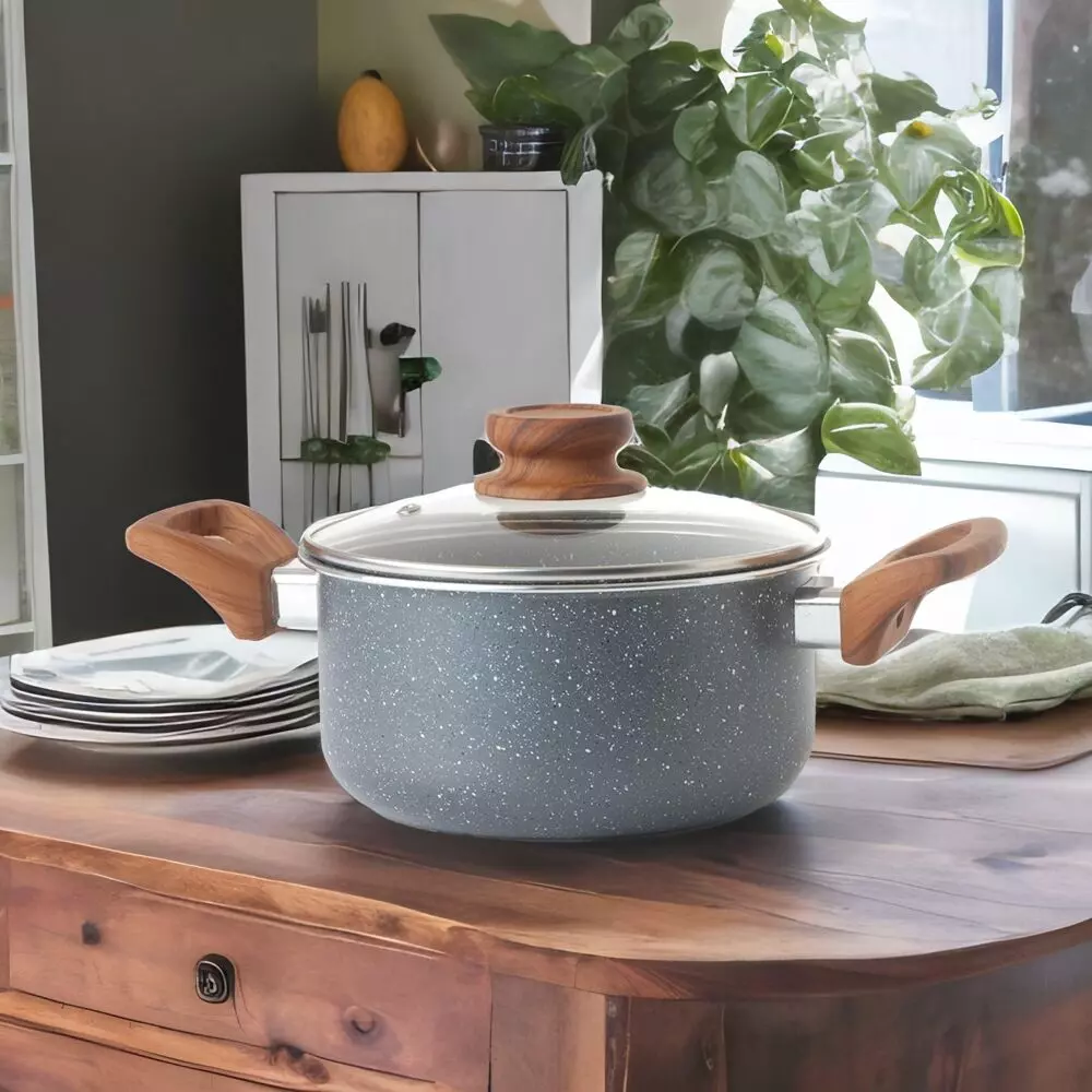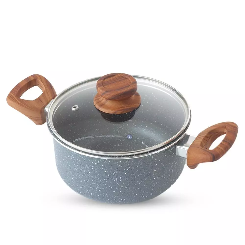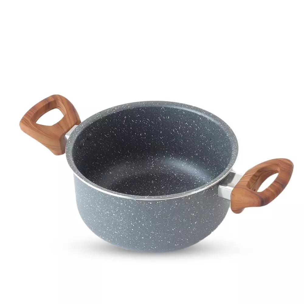 قدر مصنوع من الجرانيت الصحي المقاوم للحرارة العالية والذي يساعد في نشر الحرارة بشكل متساوٍ للغاية وتقليل استهلاك الطاقة ، مما يجعل من السهل ضبط درجة الحرارة حتى لا يحترق أو يلتصق الطعام.