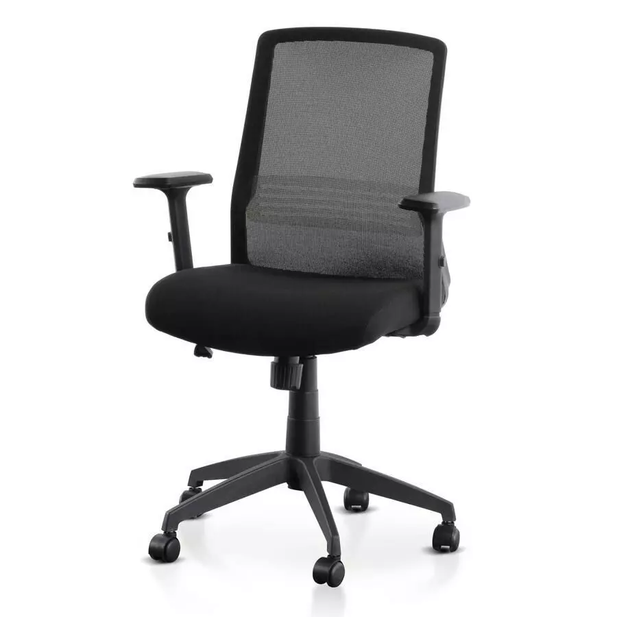 يدعم كرسي المكتب المتميز راحتك في مساحة العمل مع التصميم الأنيق لون أسود بالكامل.
