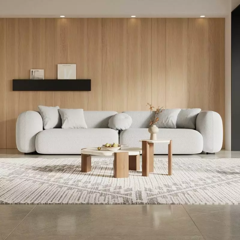 تم تنجيد الكنبة بقماش بوليستر عالي الجودة، مقاوم للتآكل وسهل التنظيف، مما يوفر لك تجربة استخدام مريحة وعملية.