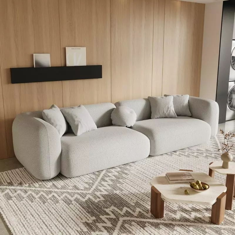 أضف الفخامة والراحة إلى منزلك مع كنبة رباعية كوانتو - رمادي فاتح، التي تجمع بين التصميم العصري والمواد المتينة لتمنحك قطعة أثاث مثالية. تتضمن الكنبة أربع وسائد من نفس اللون والتصميم، مما يضيف لمسة أنيقة ومريحة لغرفة المعيشة.