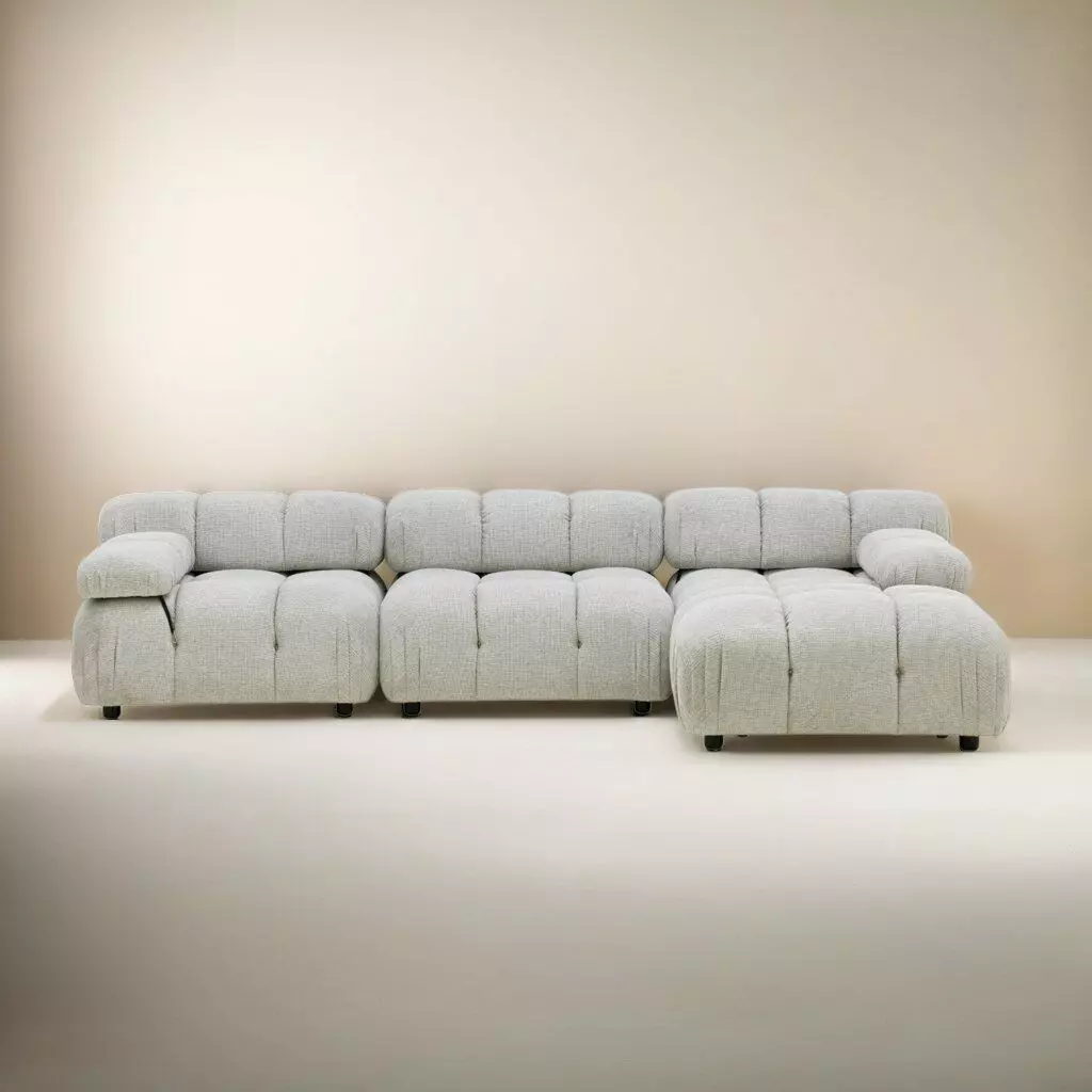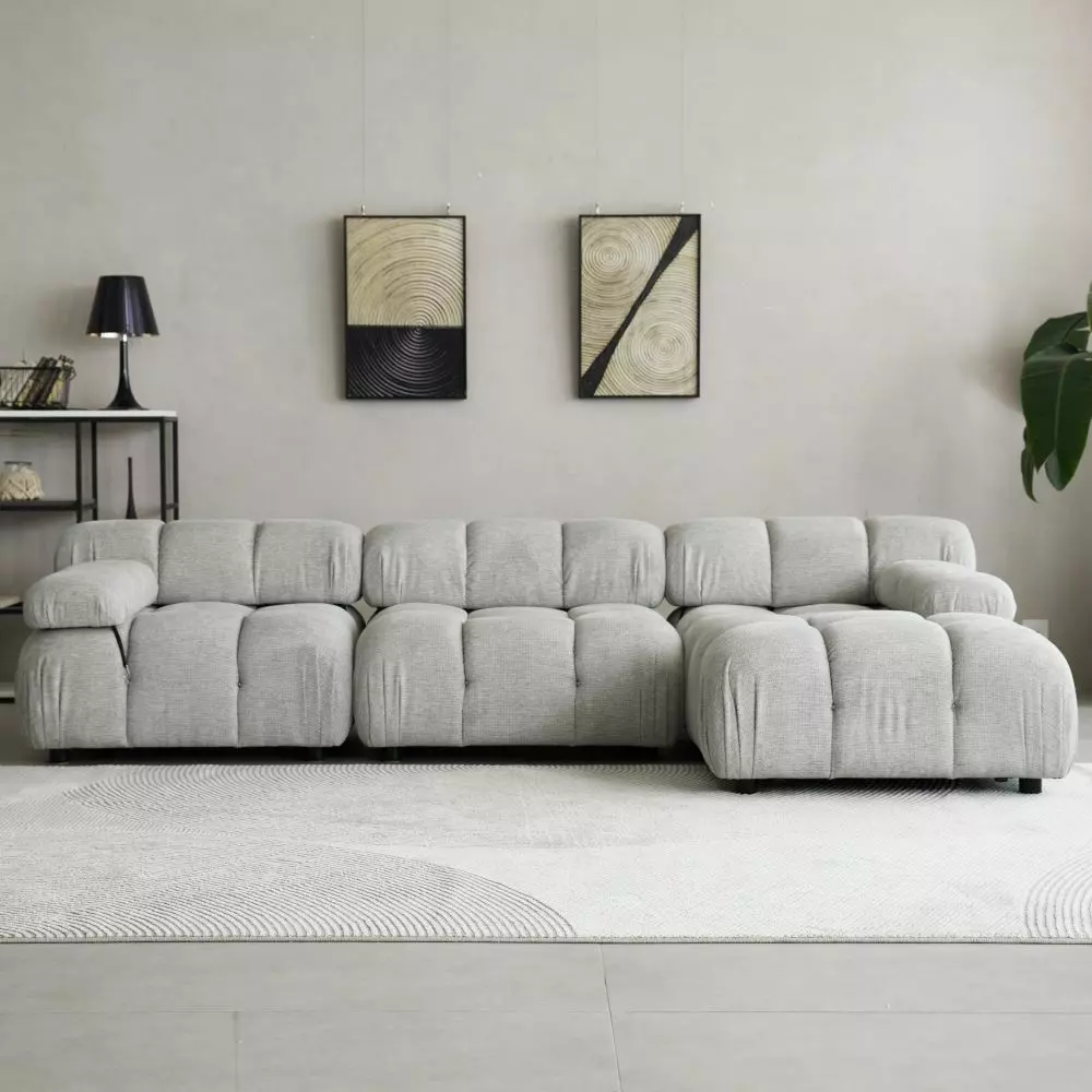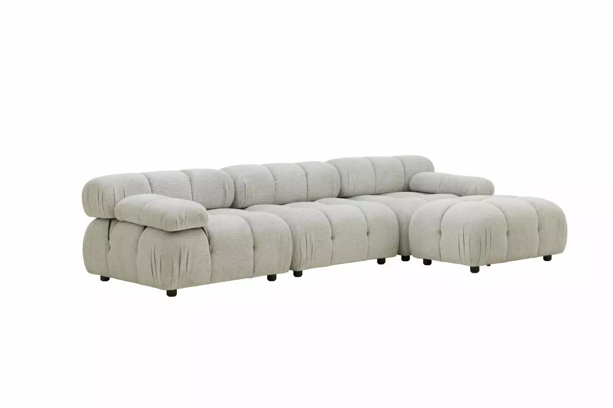 | يتضمن الطقم | 1 كنبة زاوية مقعد يمين - 1 كنبة زاوية مقعد يسار - 1 كنبة مقعد بدون ذراعين - 1 مقعد بف |