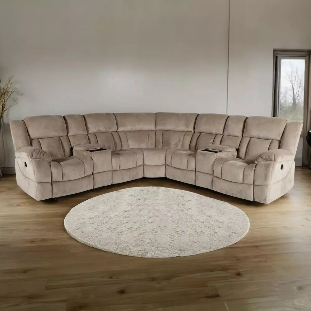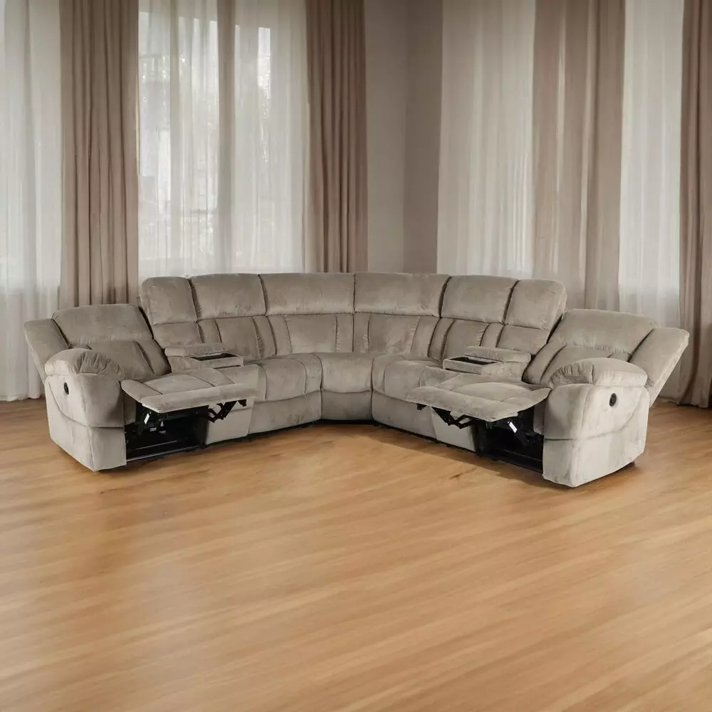 استمتعي بالاسترخاء براحة تامة مع كنبة الاسترخاء الزاوية القابلة للإمالة الكهربائية ذات الخمسة مقاعد هذه. مُنجدة بقماش متين، وتتميز بوجود لوحتين للتحكم مع 4 حاملات أكواب وصينيتن للشحن اللاسلكي من أجل الراحة. شكلها عصري أنيق، ومثالية لأمسيات الأفلام، أو أيام اللعب، أو الاسترخاء مع أحبائك..قد يختلف لون المنتج قليلاً بسبب مصادر الإضاءة الفوتوغرافية أو إعدادات الشاشة/شاشتك.