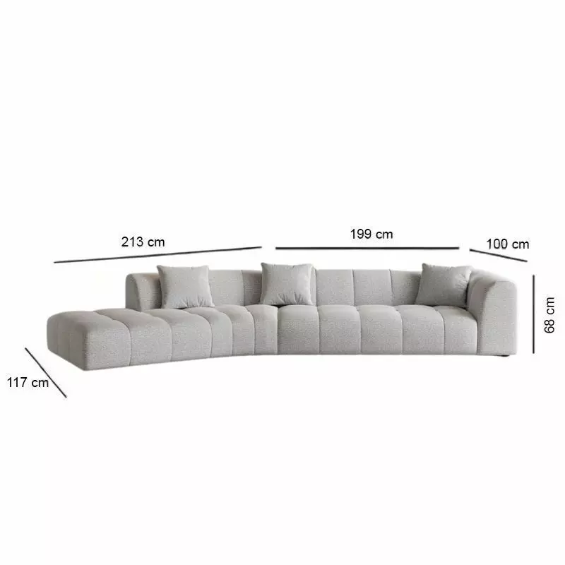 كنبة بدون ذراعين : عرض 213 - عمق 117 كنبة بذراع يسار : عرض 199 - عمق 100 االارتفاع : 68 |