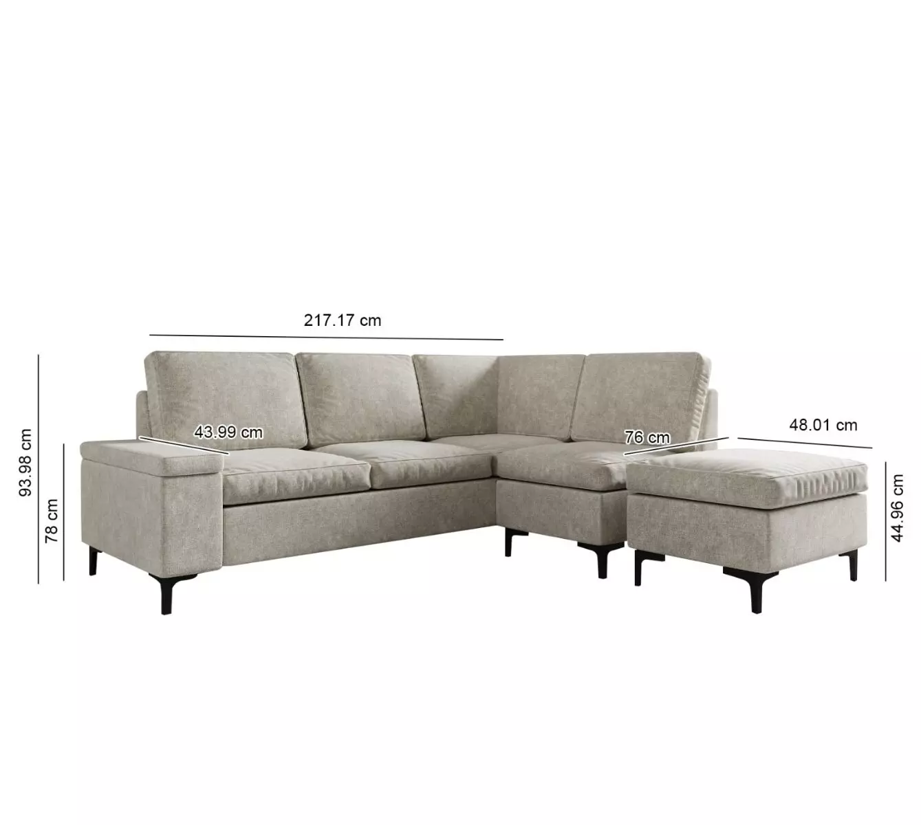 عرض : 217.17 - ارتفاع : 93.98 - عمق : 43.99 مقعد بف عرض : 76 - عمق : 48.01 - ارتفاع : 44.96 |