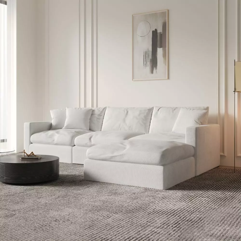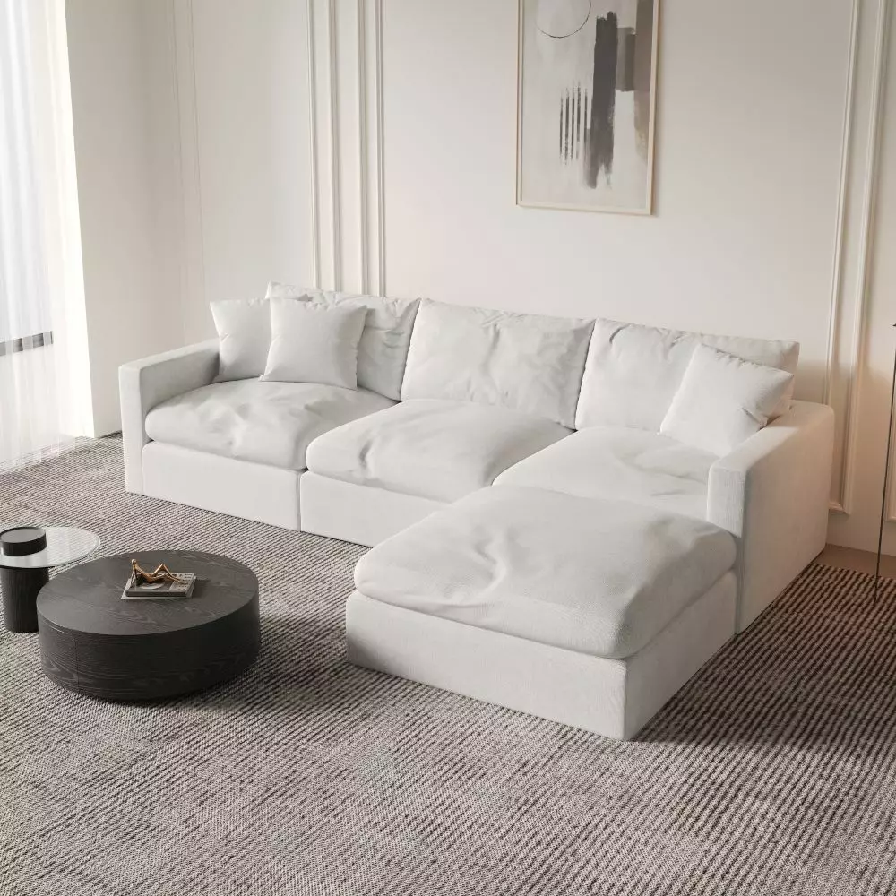 كثافة عالية D36( 36 كجم / م3 كثافة الاسفنج ) 55% قطن , 45 % كتان حشوة مقاعد من الريش ورغوة البولي بروبيلين يمكن نزع الغطاء بكل سهولة لعملية التنظيف |