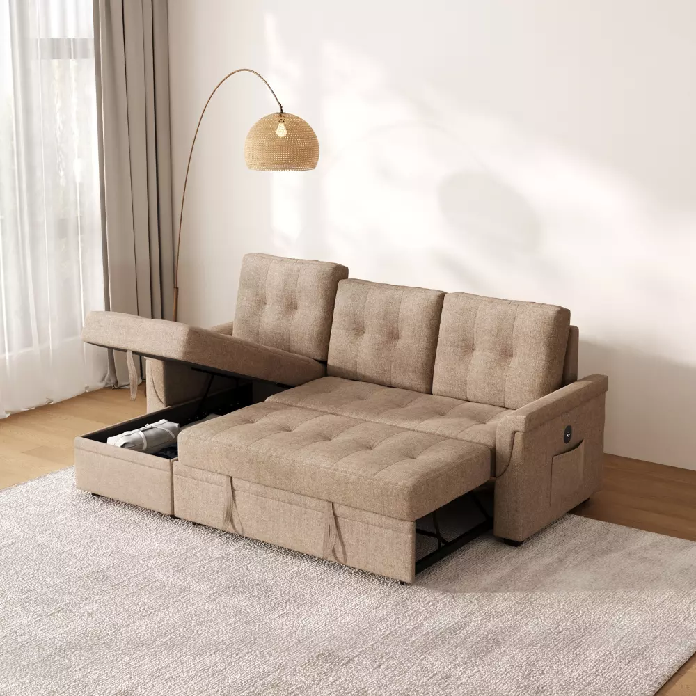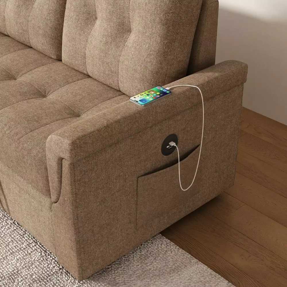 تحويل سهل – يتحول بسهولة إلى سرير مريح. بوكس تخزين واسع – مساحة تخزين عملية أسفل المقعد. منفذ شحن – شحن الأجهزة الذكية بسهولة. |