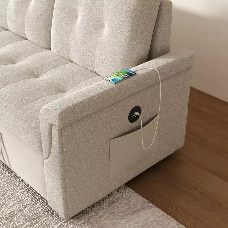 تحويل سهل – يتحول بسهولة إلى سرير مريح. بوكس تخزين واسع – مساحة تخزين عملية أسفل المقعد. منفذ شحن – شحن الأجهزة الذكية بسهولة. |