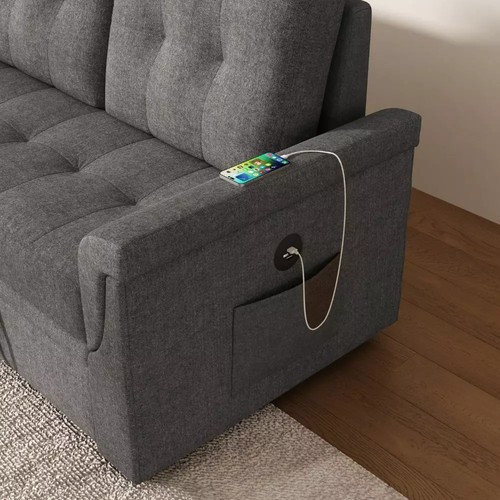 وظيفة سرير: يمكن تحويل الكنبة بسهولة إلى سرير مريح ليوفر لك مساحة إضافية للنوم أو لضيوفك.