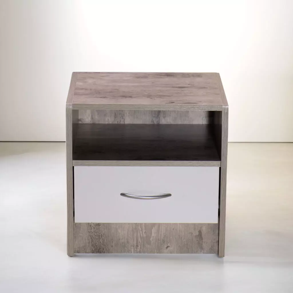 كومودينو مودرن ميشا لون رمادي وأبيض رف مع درج خشب ماليزي