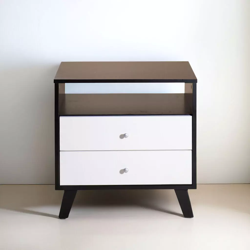 كومودينو مودرن هارف لون أسود وأبيض درج مع رف خشب ماليزي