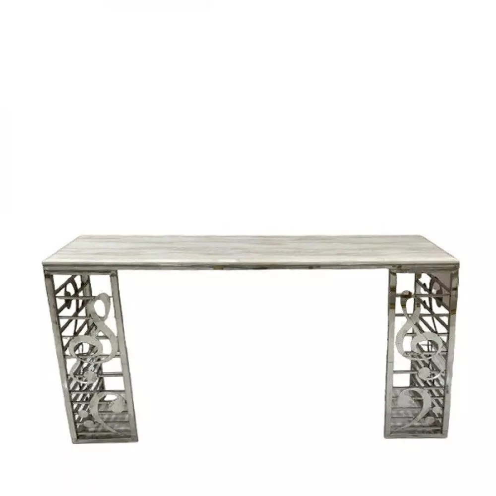 إضافة فاخرة لقطع الأثاث في منزلك العصري، طاولة كونسول، مصمم بسطح رخام وطابع خاص مثالي لعرض مختلف التماثيل وقطع الديكور، مصنوع من أجود الخامات بقاعدة معدنية لضمان المتانة والاستدامة. يمكن تنظيفه بكل سهولة .