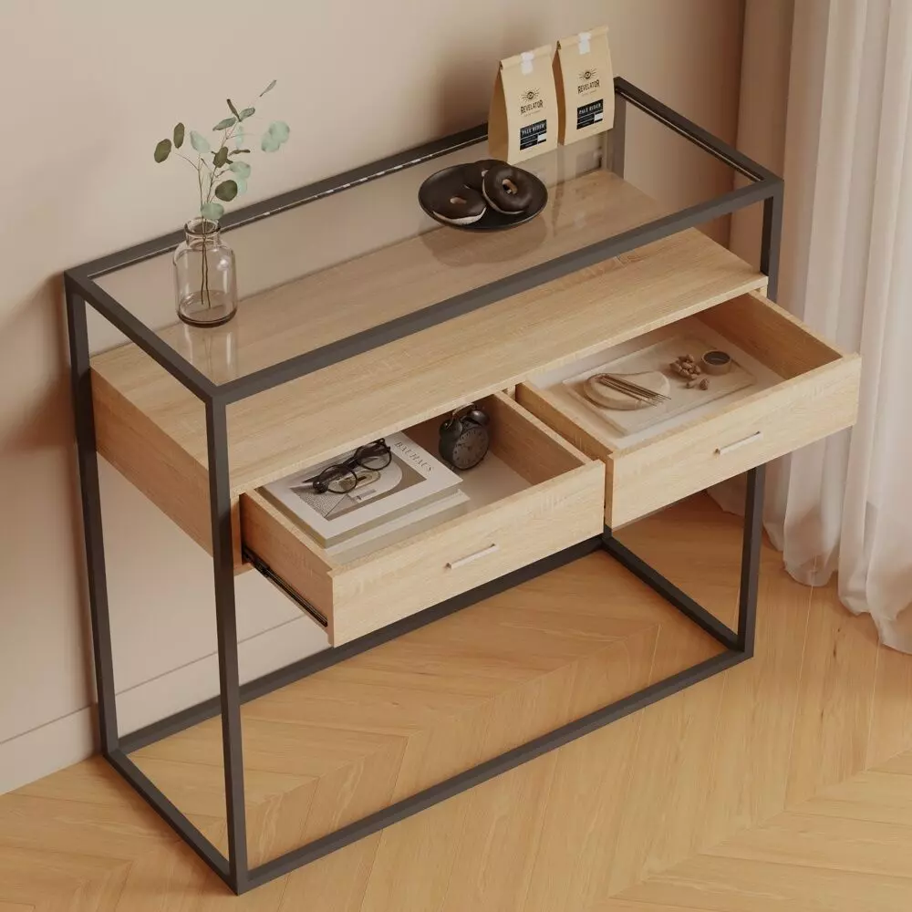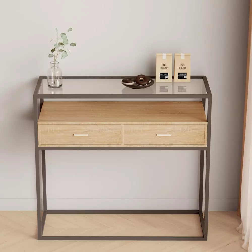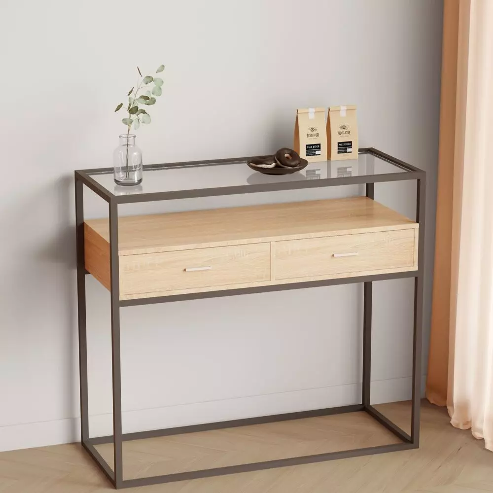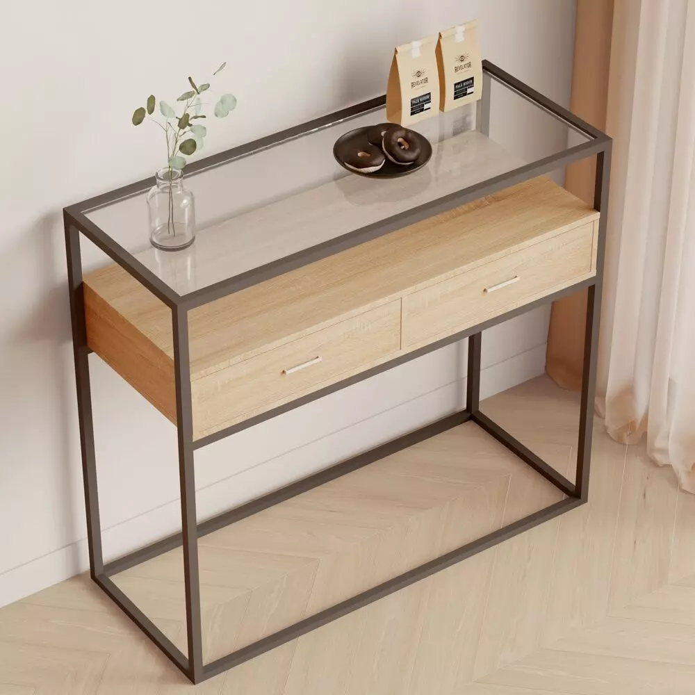 صُممت طاولة الكونسول هذه ذات الطبقتين من زجاج مقسّى عالي الجودة. على عكس الزجاج الشائع، فإن الطاولة المصنوعة من هذه المادة مقاومة للتلف بسبب الخدوش أو الصدمات العرضية.