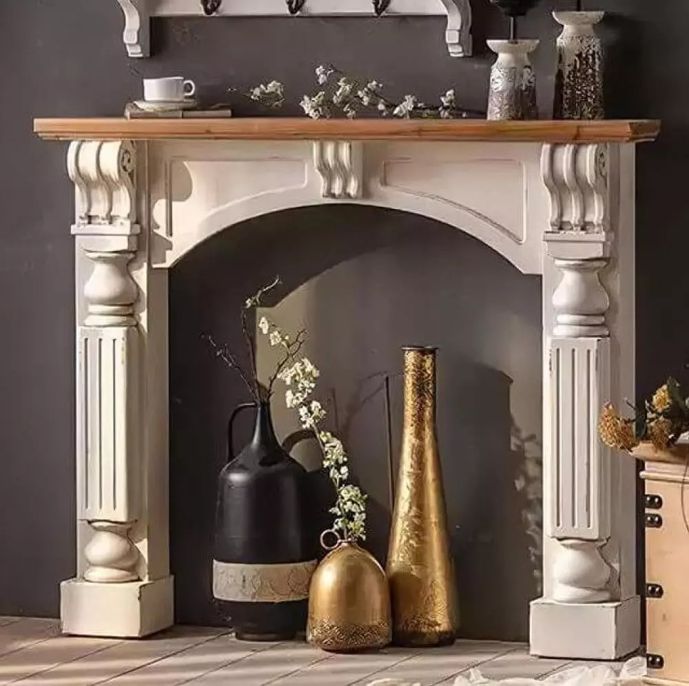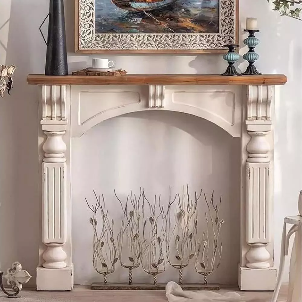 كونسول خشب شكل مدفأة كايار لون أبيض ريفي
