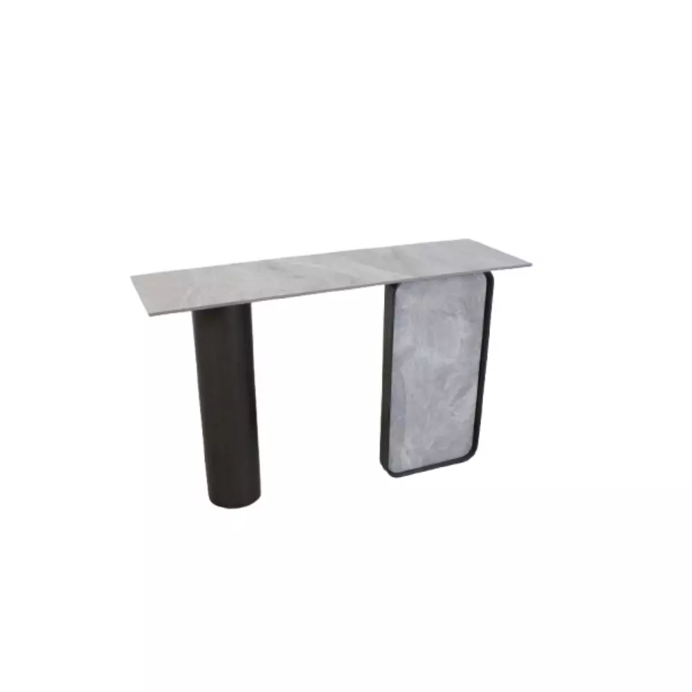 ميز مدخل منزلك باقتناء كونسول سبيشال الأنيق مصنوع من خامات عالية الجودة من السيراميك باللون الرمادي وقوائم حديد باللون الاسود يناسب الذوق العصري .