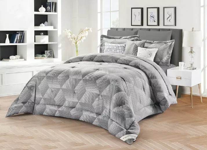 | يتضمن الطقم | 1 لحاف ، 1 شرشف سرير ، 2غطاء وسادة نوم ،2غطاء وسادة ديكور، 3 خداديات |