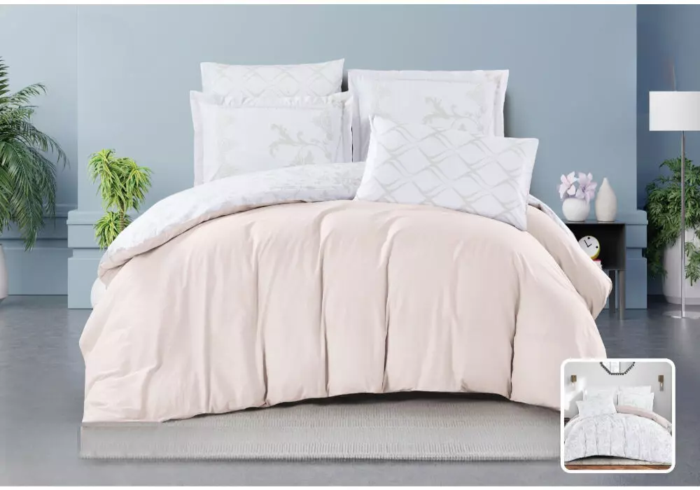 طقم لحاف كينغ يعطي أناقة للأسرة والراحة والدفء خلال النوم تعتبر أساسية في كل منزل لذلك نوفر لك أجمل طقوم اللحاف بتصاميم ونقشات متنوعة وجذابة وخامات عالية الجودة. تصميم مميز وخامات عالية الجودة يشكل إضافة رائعة لأطقم اللحافات الخاصة بك. وسادة نوم: عدد القطع : 4, 2 غطاء وسادة نوم مع حواف , المقاس: الطول 50 x العرض 75+5 سم - 2 غطاء وسادة نوم بدون حواف , المقاس : الطول 50 x العرض 75 سم شرشف سرير: عدد القطع: 1 , المقاس:200 × 200 + 30