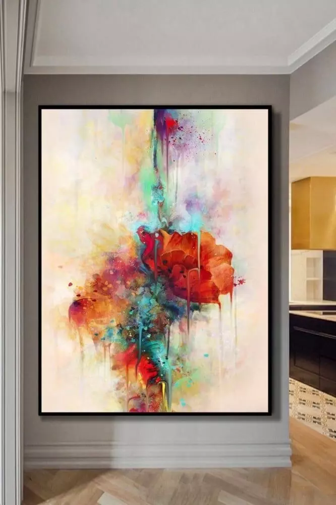 لوحة من الفن التجريدي الحديث، مزيج من ألوان فخمة بشكل متمازج.