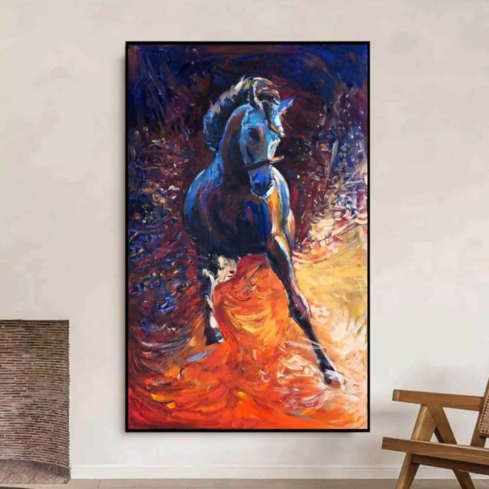 A horse with a dark background, suitable for living rooms, halls, and corridors. We have expertly selected it and are crafting it with artistry.