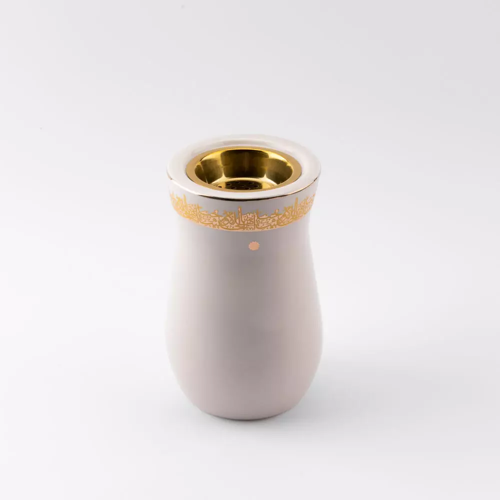 مبخرة من أثير باللون البيج والذهبي مصنوع من البورسلين.