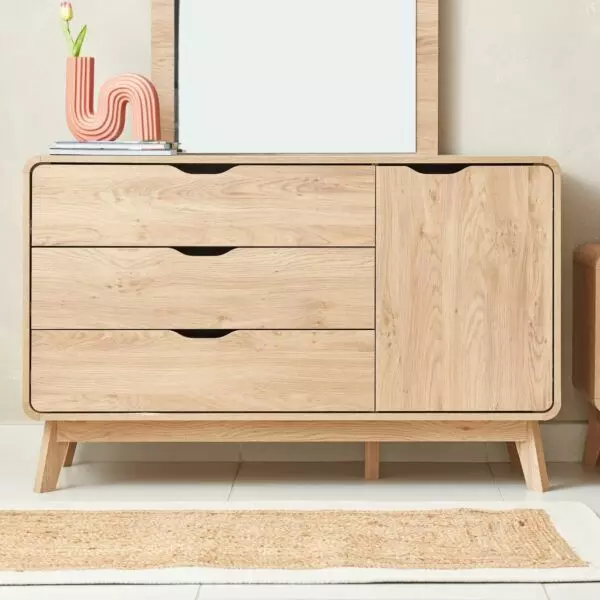 أبعاد طاولة التزيين: العرض (سم): 120 - الإرتفاع (سم): 76 - العمق (سم): 45 -- أبعاد المرآة: العرض (سم): 70 - الإرتفاع (سم): 102.5 - العمق (سم): 3 مقاسات السرير: الطول (سم): 207 - العرض (سم): 190 - الإرتفاع (سم): 90 مقاس الكمدينو: العرض (سم): 47.2 - الإرتفاع (سم): 54.2 - العمق (سم): 40 |