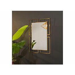 مرآه زجاجية بإطار بلون ذهبي والسطح الزجاجي عاكس بتصميم مستطيل هي قطعة ديكورية فاخرة وجميلة تضيف لمسة من الأناقة والفخامة على المكان. يجمع هذا التصميم بين الفخامة والجاذبية ليضفي جوًا من الرقي على المكان.