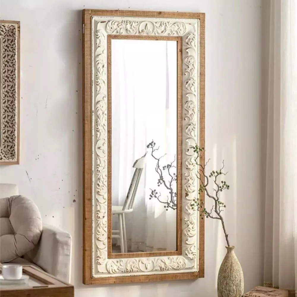 مرآة خشب وحديد مستوحاة من طابع الديكور الريفي الأصيل، تضفي لمسة دفء وأناقة على أي مساحة داخل منزلك. إطارها يجمع بين خشب طبيعي عالي الجودة وحديد مطلي بدقة لإبراز الطابع البوهيمي المميز، مما يجعلها قطعة مثالية للزينة وللاستخدام العملي في مختلف الغرف.