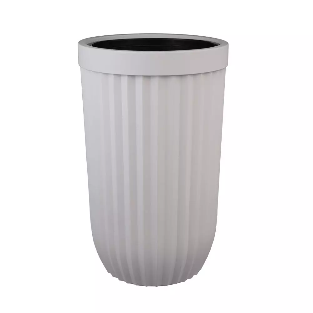 مركن أبيض مقلم يضفي لمسة عصرية وأنيقة على أي مساحة. تصميمه المخطط البسيط يجعله مثاليًا لعرض النباتات بشكل أنيق ومميز. مصنوع من مواد متينة لضمان الاستخدام الطويل.