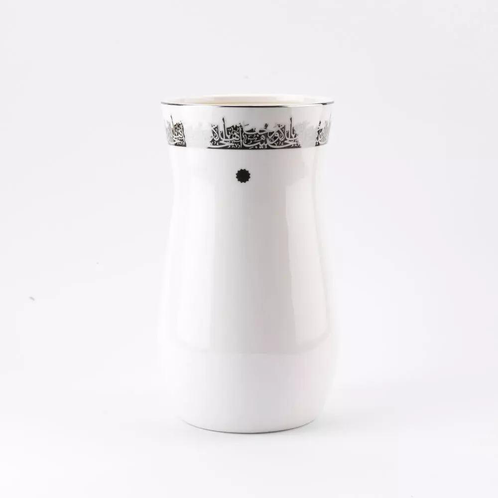 مزهرية ورد كبيرة من أثير باللون الابيض والفضي مصنوعة من البورسلين.