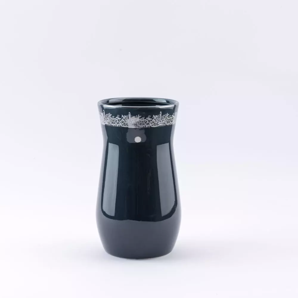 مزهرية متوسطة من أثير باللون الأزرق والفضي مصنوع من البورسلين.