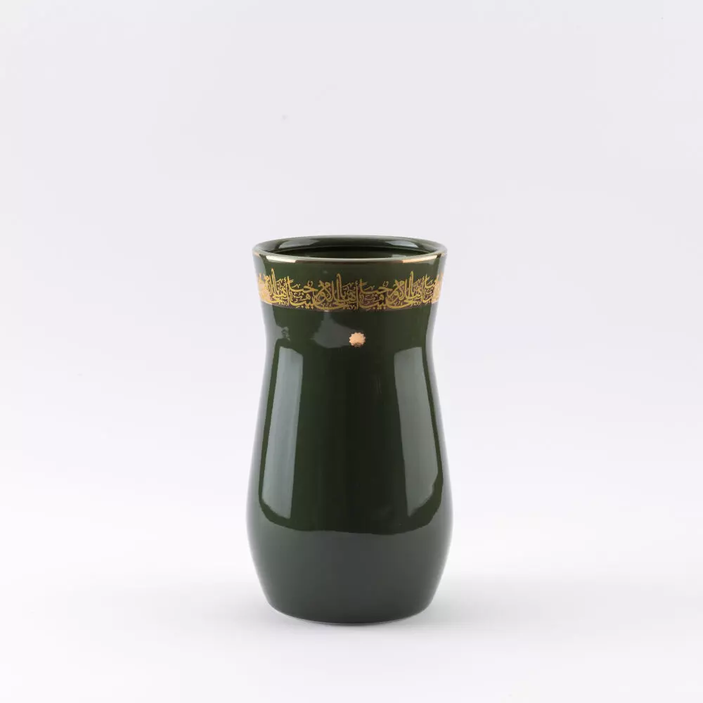مزهرية متوسطة من أثير باللون الزيتي والذهبي مصنوع من البورسلين.