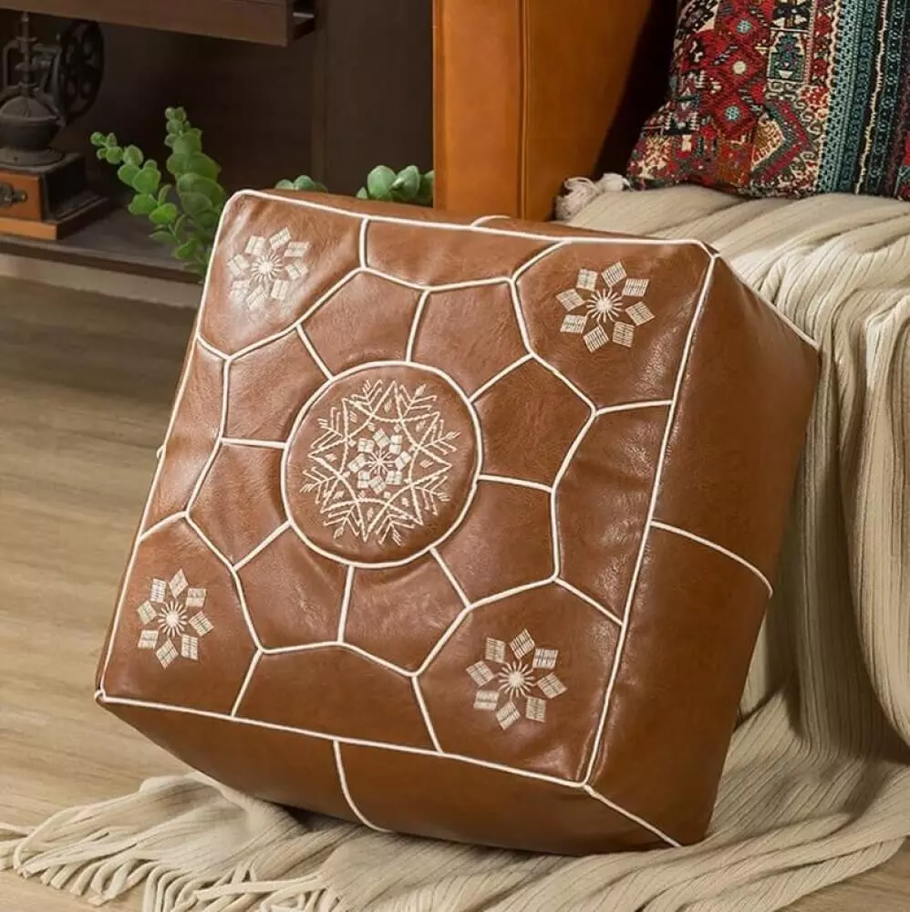 بوف جلدي طراز مغربي فاخر – لمسة أصيلة في ديكور منزلك أضف لمسة من الفخامة الشرقية والدفء الريفي إلى ديكور منزلك مع هذا البوف المغربي المصنوع يدويًا من الجلد الصناعي. تصميمه المستوحى من الزخارف التقليدية يدمج بين التراث والحداثة، ليكون قطعة ديكور وعملية في آنٍ واحد.