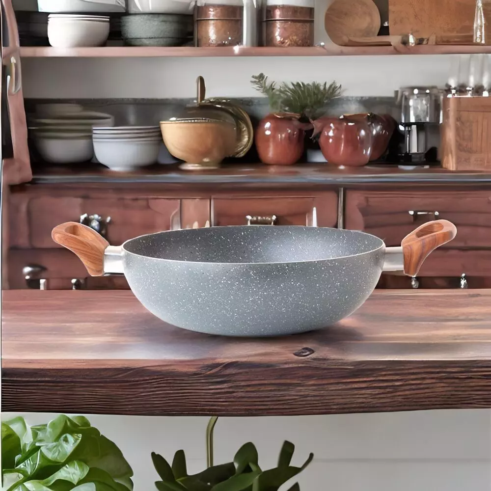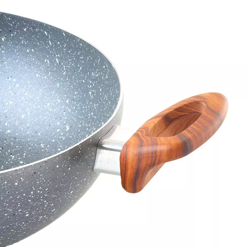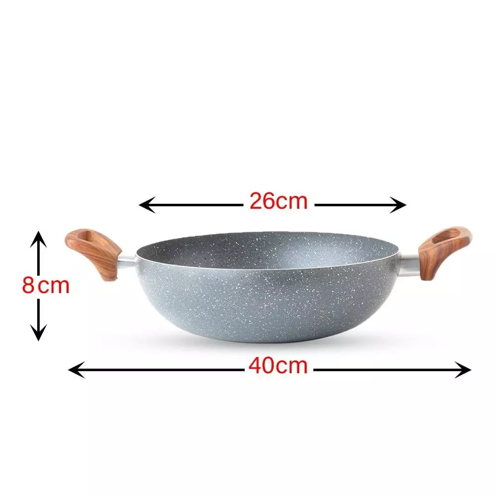 مقلاة جرانيت رصاصي - 26 سم - مصنوعة من الجرانيت الصحي المقاوم للحرارة العالية والذي يساعد في نشر الحرارة بشكل متساوٍ للغاية وتقليل استهلاك الطاقة ، مما يجعل من السهل ضبط درجة الحرارة حتى لا يحترق أو يلتصق الطعام.