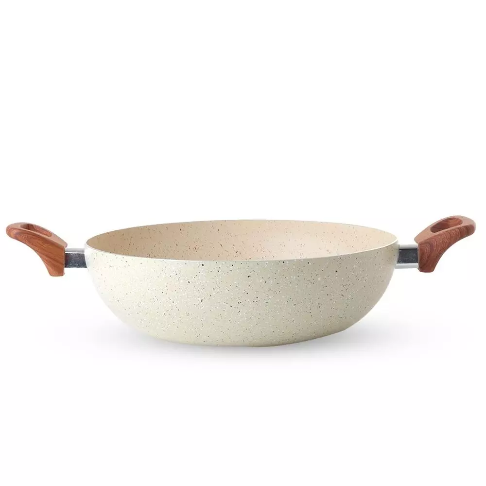 مقلاة جرانيت بيج - 28 سم - مصنوعة من الجرانيت الصحي المقاوم للحرارة العالية والذي يساعد في نشر الحرارة بشكل متساوٍ للغاية وتقليل استهلاك الطاقة ، مما يجعل من السهل ضبط درجة الحرارة حتى لا يحترق أو يلتصق الطعام.