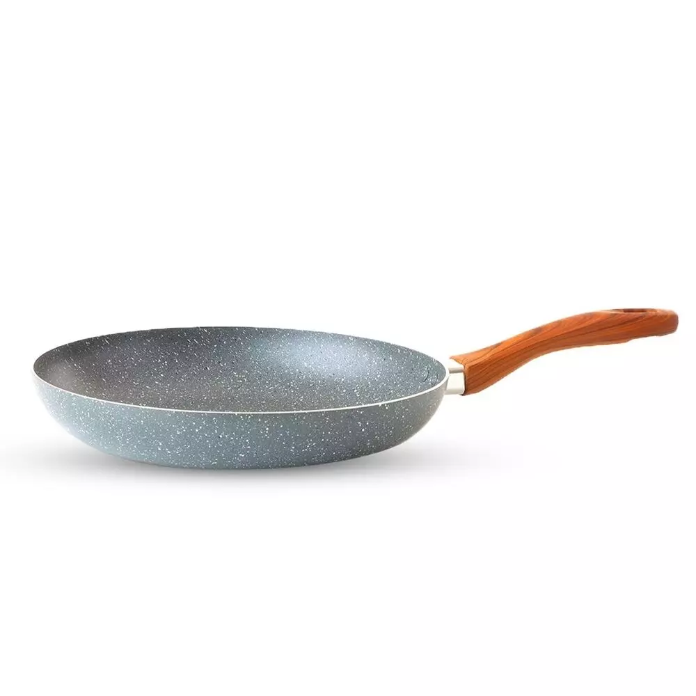 مقلاة جرانيت رصاصي - 28 سم - مصنوعة من الجرانيت الصحي المقاوم للحرارة العالية والذي يساعد في نشر الحرارة بشكل متساوٍ للغاية وتقليل استهلاك الطاقة ، مما يجعل من السهل ضبط درجة الحرارة حتى لا يحترق أو يلتصق الطعام.