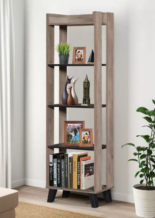 وحدة تخزين رفوف 5 رفوف خشب ماليزي متعددة الإستخدام رمادي وبني
