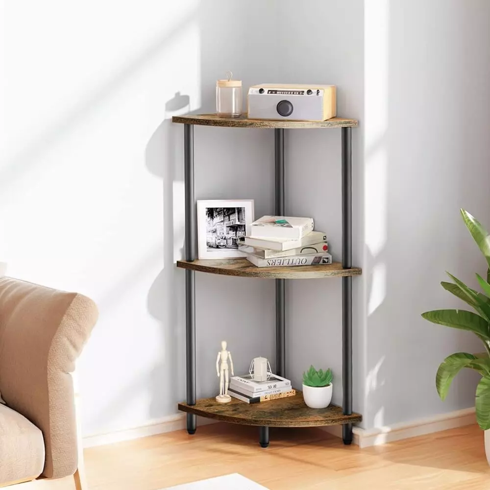 تتميز حبيبات الخشب الفريدة والعناصر المعدنية بتسليط الضوء على النمط الصناعي، وتبرز البساطة الشعور بالفخامة، مع رف الزاوية هذا لتزيين غرفتك، عملي وجميل