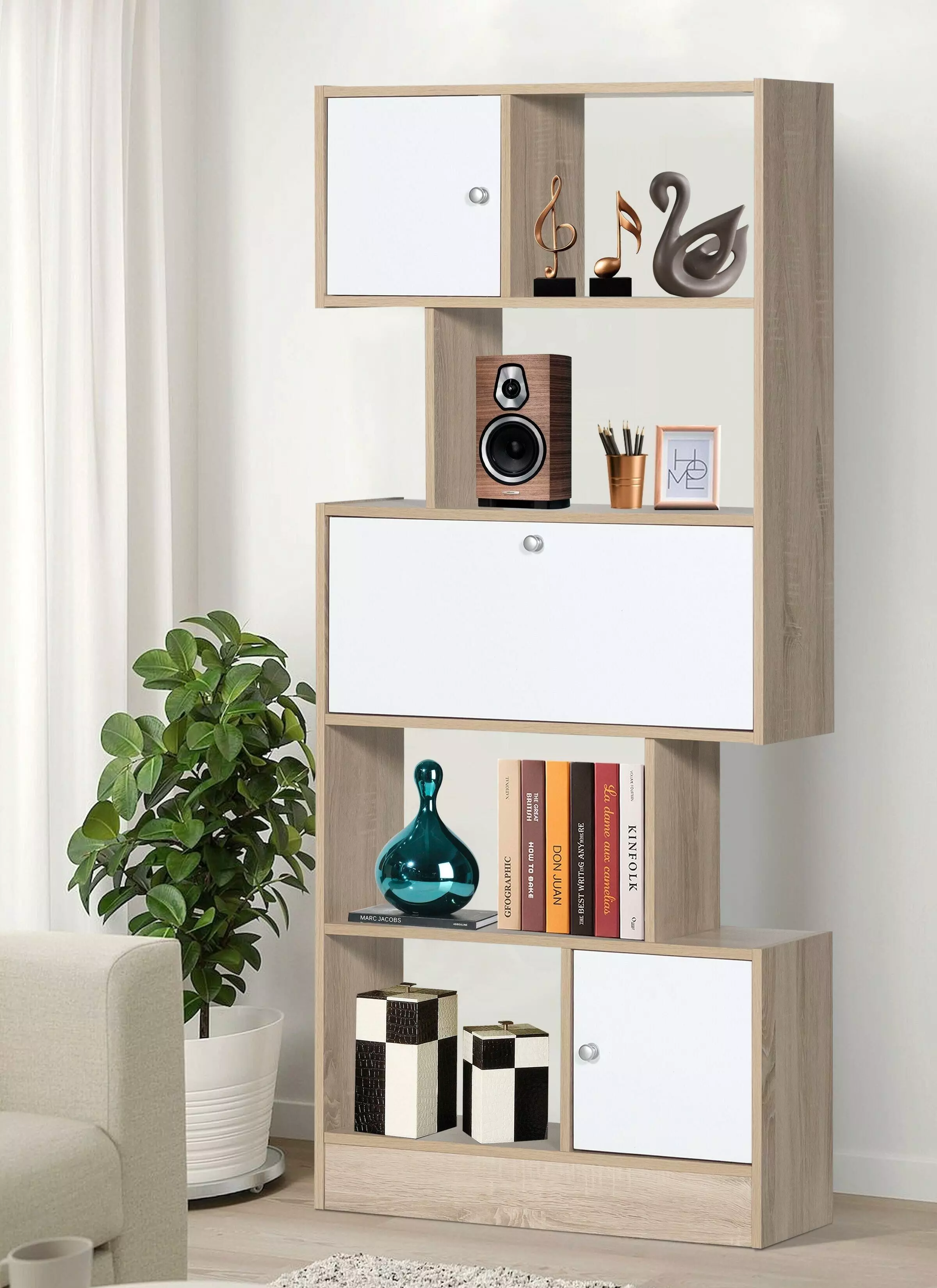 مواصفات ومميزات وحدة رفوف روماليا - لون خشبي فاتح وأبيض: تتضمن الوحدة خمس ادوار مقسمة لتعطيها شكل مميز. مصنوعة بحرفية فائقة من موادة فائقة الجودة تتضمن المتانة مصنوعة من الخشب الماليزي عالي الجودة المصقول بعناية ليضمن المتانة الدائمة الوحدة مطلية بألوان ثابتة مع الزمن ومتوافقة مع تشكيلة مختلفة من قطع الأثاث. تصميم عصري بسيط يلائم جميع ديكورات المنزل المودرن والكلاسيكية. الرفوف ذات مساحة كافية تساعدك على ترتيب كميات كبيرة من المقتنيات. تصميم الرفوف المفتوح يمكنك من عرض الاكسسورات والتحف المميزة لك بشكل عصري وانيق ارتفاع كل دور مناسب لترتيب بعض الفازات مما يجعلها مناسبة لمحبي الزرع والزهور أيضا تسمح لك الأقسام المغطاة بأبواب بتخزين بعض المقتنيات بمعزل عن الانظار. تتميز الأبواب بسهولة الفتح والإغلاق بفضل متانتها وتصميمها المميز. يمكنك مع وحدة الرفوف ترتيب الكتب والاكسسوارات والتحف المختلفة وترتيبها وفق ذوقك. متعددة الاستخدامات, جذابة, ومتينة وتدوم مع الزمن عند الالتزام بتعليمات العناية.