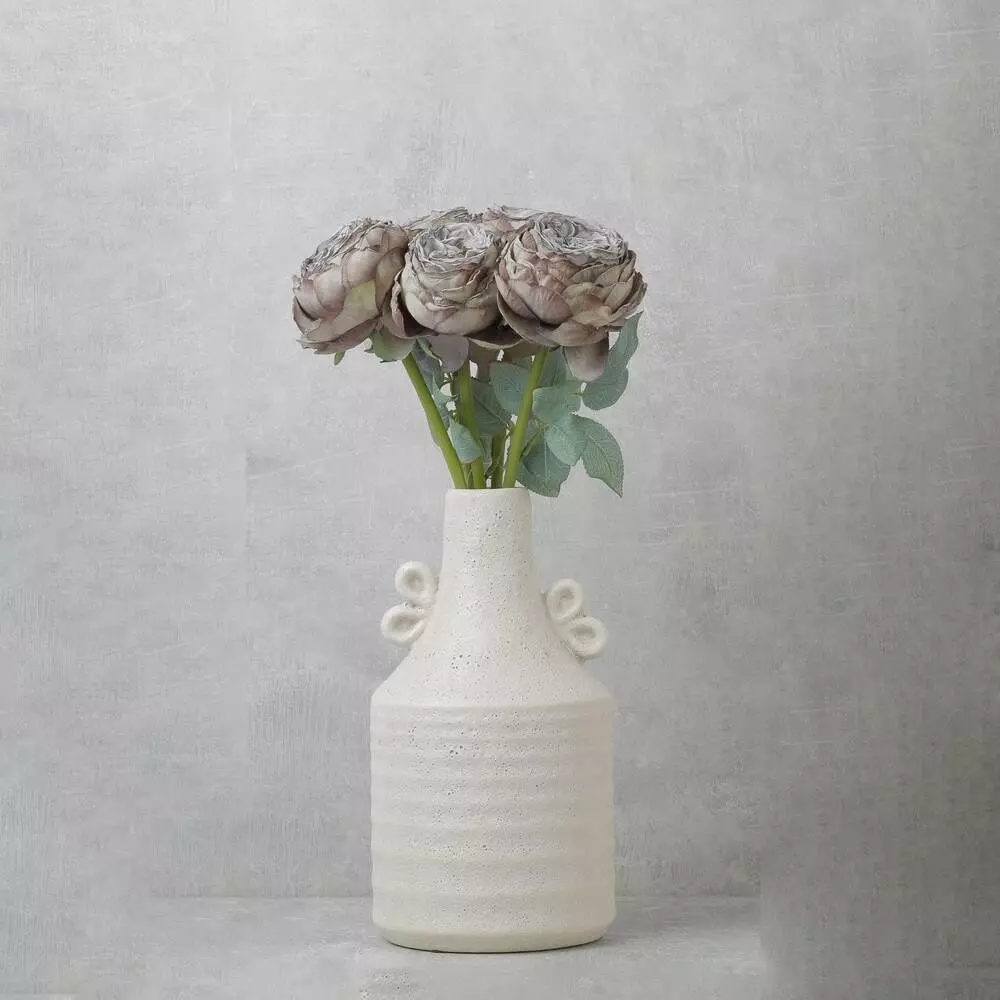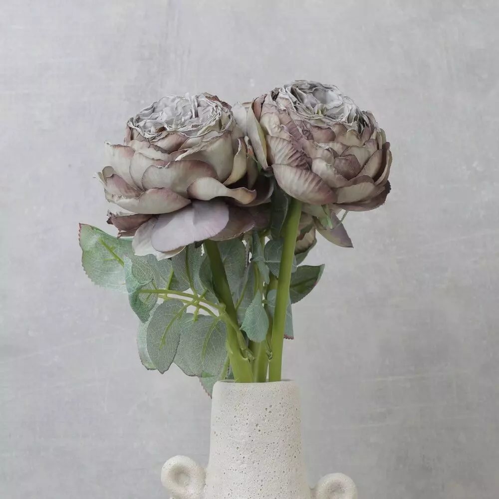 زهرة البيوني الصناعية باللون الرمادي تتألق بتفاصيلها الدقيقة وبتلاتها الهادئة، مما يضفي أناقة عصرية على أي ديكور.