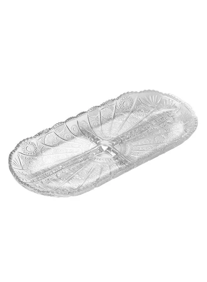 وعاء تقديم زجاجي فاخر بيضاوي مقسم - شفاف