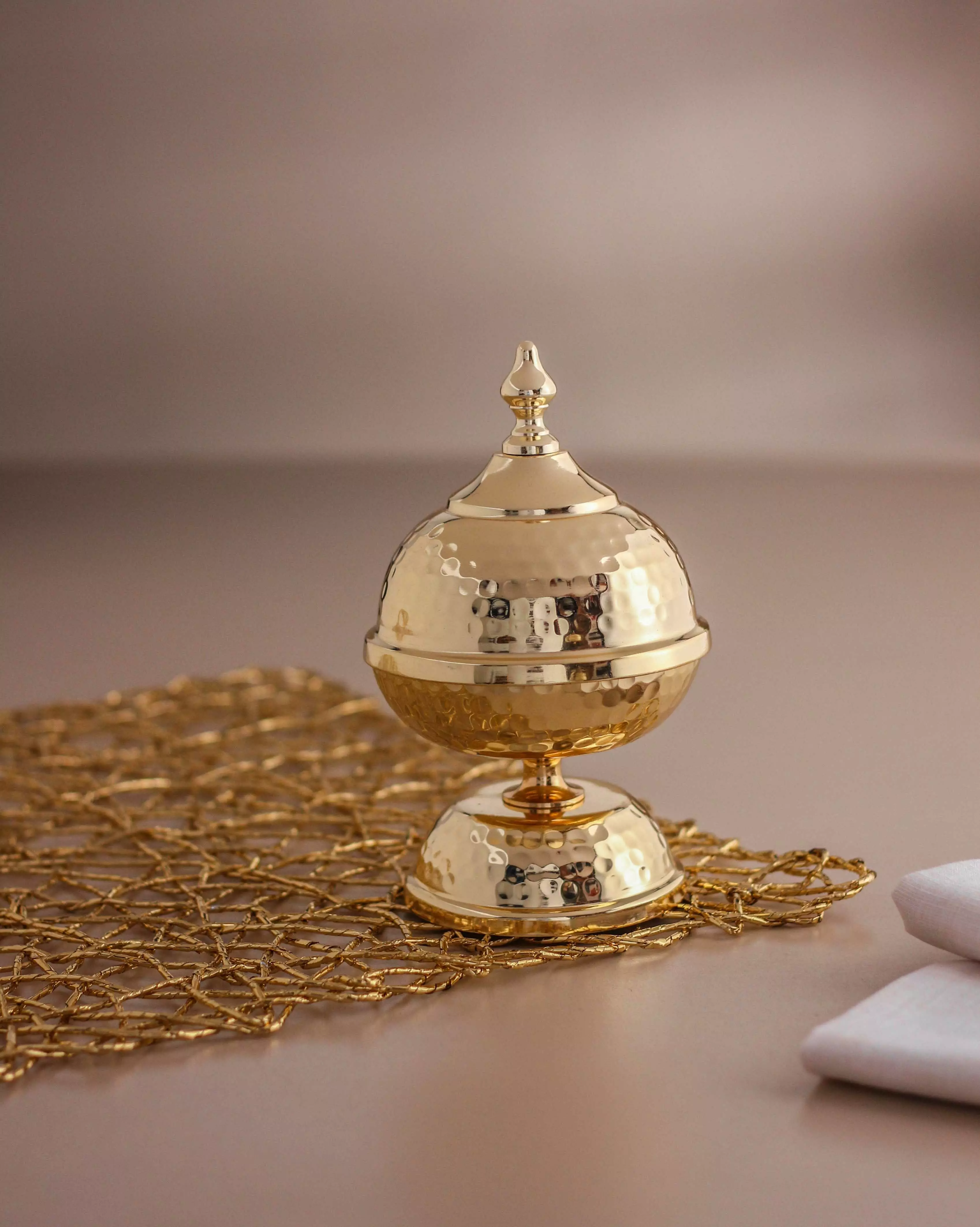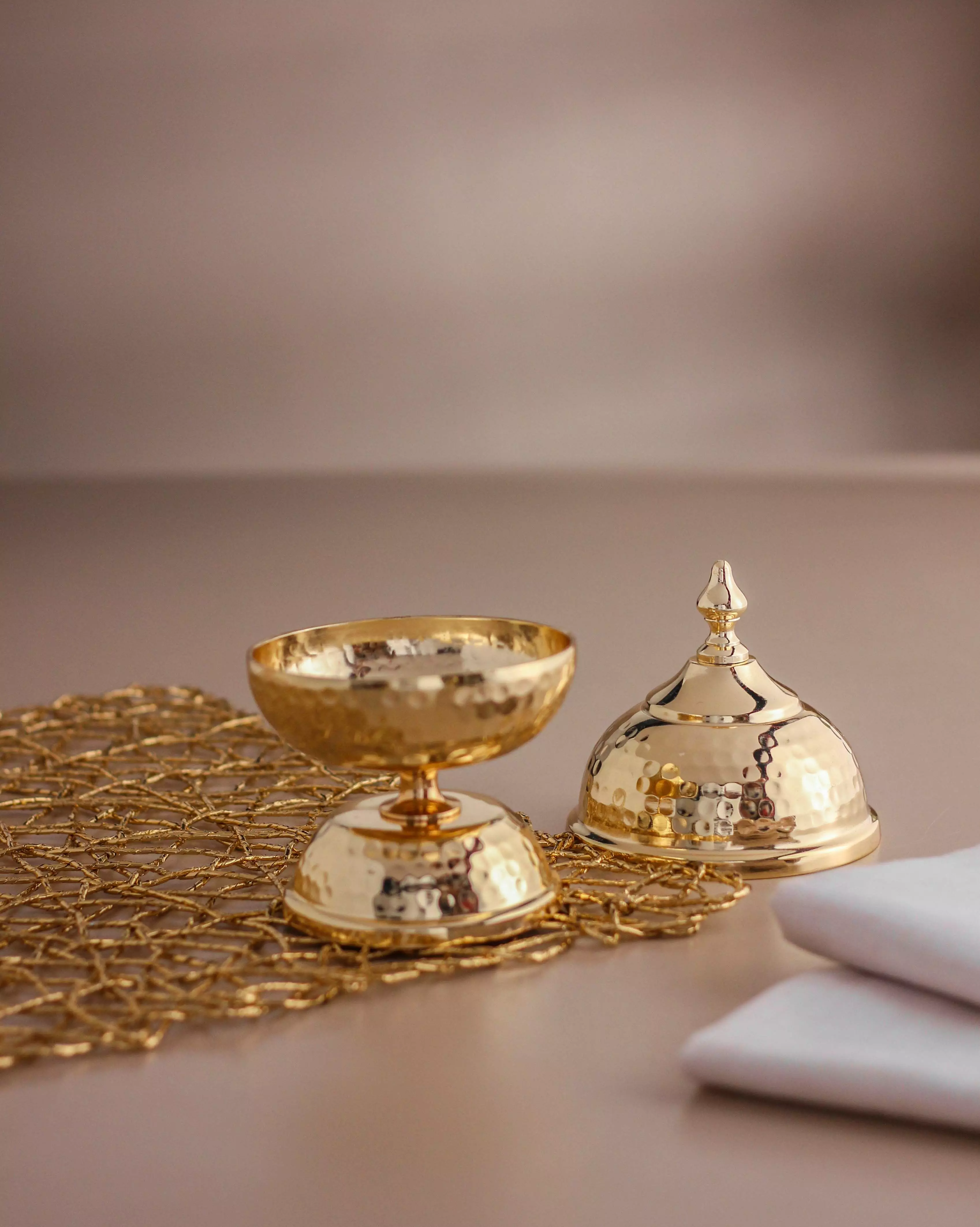 تمرية فاخرة مصنوعة من الاستيل عالي الجودة . لها غطاء لحفظ جودة الطعام طازج لفترة طويلة وقاعدة لسهولة حملها، أنيقة وعصرية لتقديم التمر والمكسرات للضيوف والعائلة في المناسبات الخاصة والعامة.