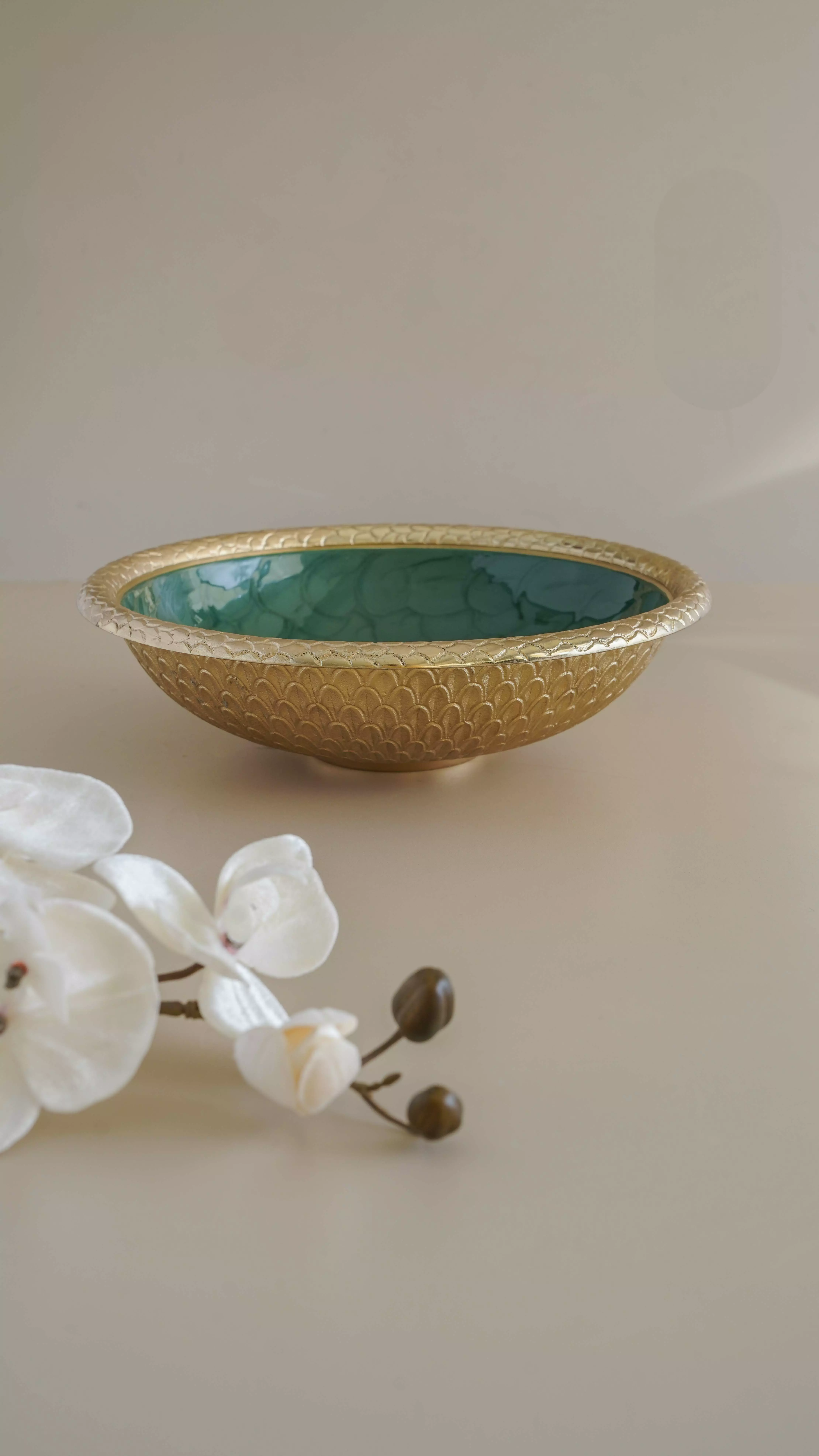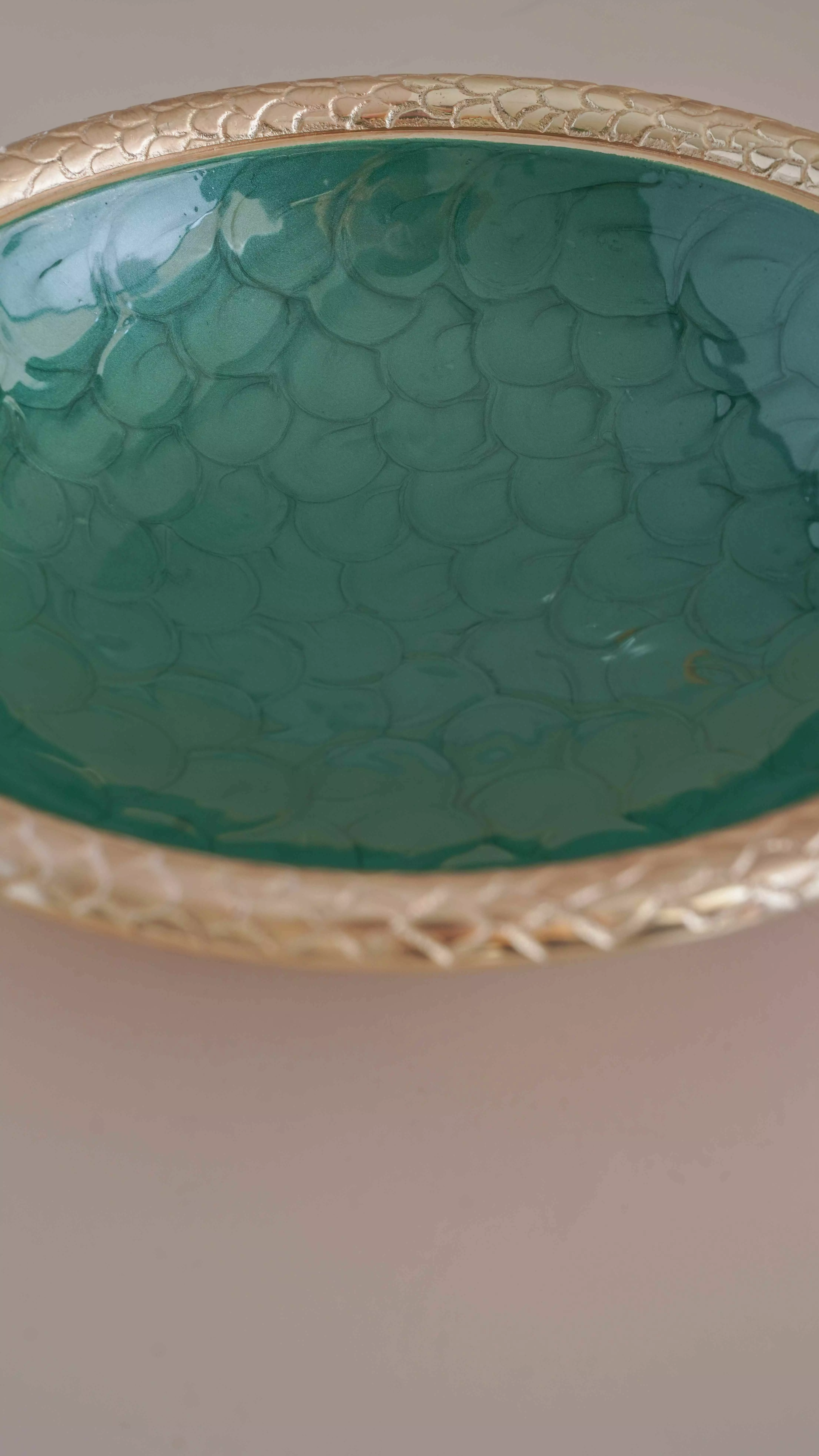 طبق تقديم موركان - حجم متوسط , لون أخضر وذهبي قدم ضيافتك بأسلوب فريد وفاخر باستخدام أجمل أطباق التقديم المودرن والمميزة. طبق تقديم موركان - حجم متوسط , لون أخضر وذهبي يشكل إضافة مميزة لمجموعة التقديم الخاصة بك بفضل تصميمه ذو الطابع الملكي الفخم. كما أنه مصنوع يدويا من الستيل العالي الجودة على يد الحرفيين المهرة.
