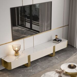 طاولة تلفزيون مودرن كليرتل بمساحات تخزين - أبيض وكريمي