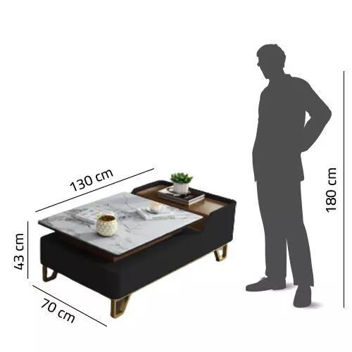 | أبعاد طاولة القهوة | الارتفاع 43 سم * العرض 130 سم * العمق 70 سم |